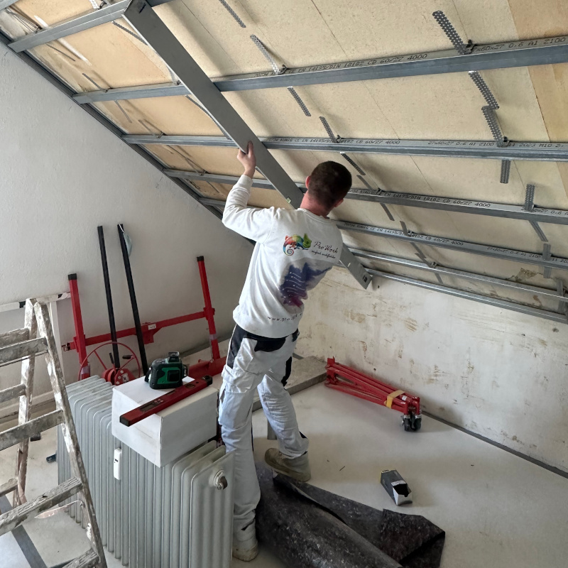 Bei Pro Work beginnt jedes Trockenbauprojekt mit einer persönlichen Beratung. Gemeinsam definieren wir die optimale Lösung für Ihre Räume, abgestimmt auf Nutzung, Design und Anforderungen wie Schall- oder Brandschutz. Anschließend setzen wir die Planung präzise, sauber und zuverlässig um, sodass Ihre neuen Raumstrukturen langlebig und funktional sind.